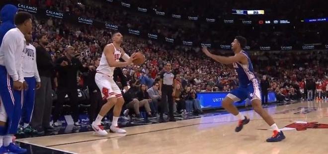 當(dāng)時(shí)末節(jié)打到還剩下6分半鐘的時(shí)候,隨著馬克西的上籃,費(fèi)城76人109:100仍然領(lǐng)先公牛隊(duì)整整9分??墒谴藭r(shí)他們突然斷電,最后6分半鐘費(fèi)城76人竟然奇跡般的一球沒進(jìn),只靠馬克西罰球拿了2分,剩下所有的隊(duì)員突然不會(huì)打球了。