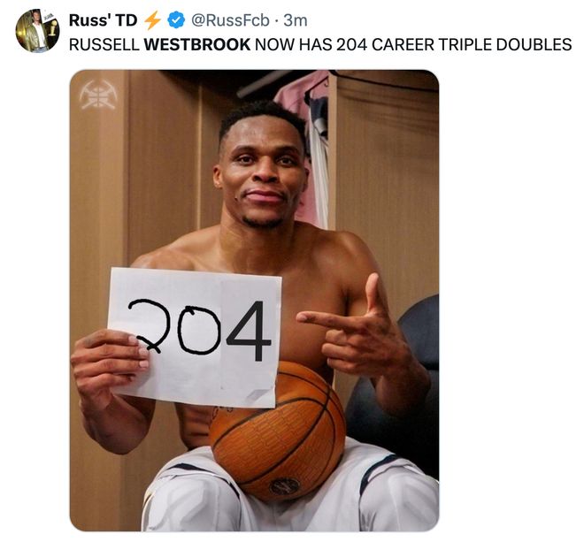 23分16板10助!就在今天,4項前無古人的NBA紀錄被威少達成了